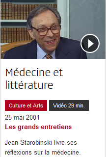 Sous le titre Jean Starobinski, l'exercice de la liberté, l'historien des idées et théoricien de la littérature Jean Starobinski a accordé en 2001 treize grands entretiens à Guillaume Chenevière, journaliste de la RTS. On peut maintenant les regarder en ligne en visitant les archives de la RTS.