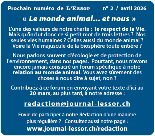 Nous ouvrons nos pages à nos lecteurs, dans tous nos forums. Comme toujours, vous êtes invités à vous exprimer. Vos textes doivent nous parvenir en principe le 15 du mois précédant la parution, sauf entente différente avec la Rédaction.